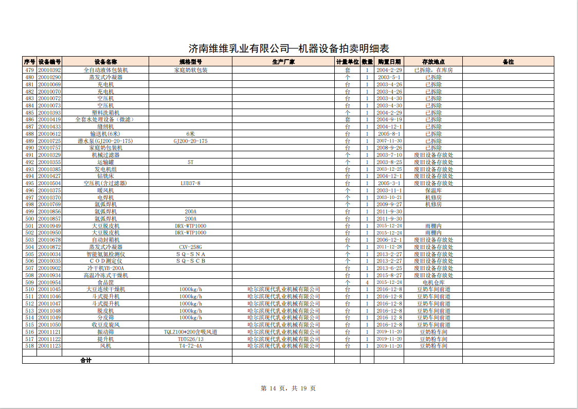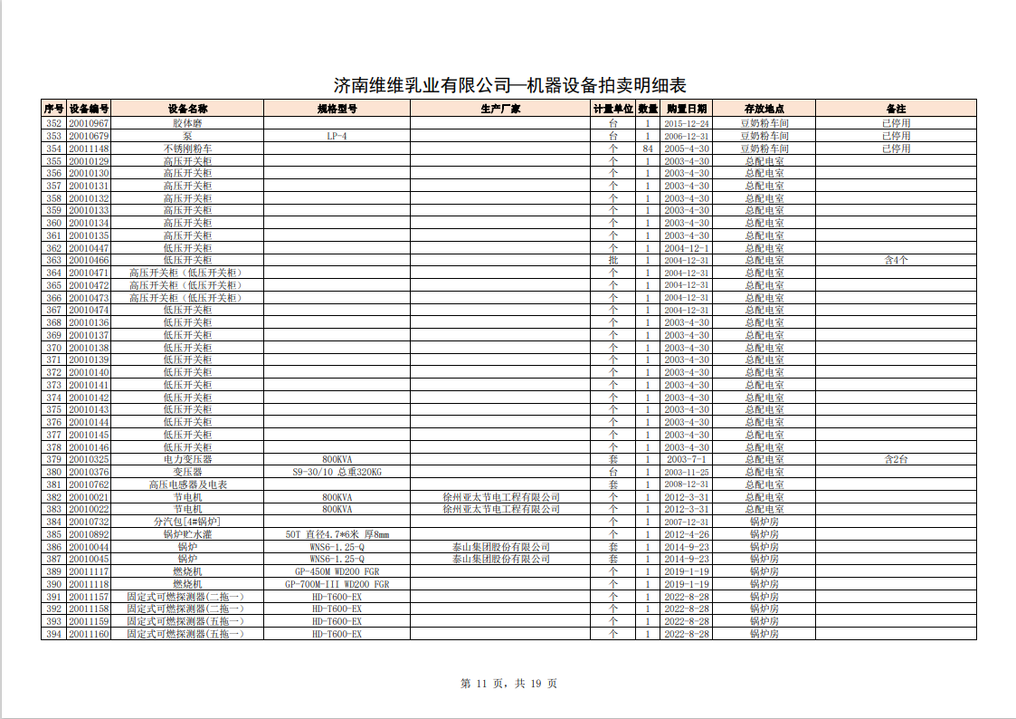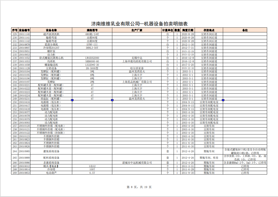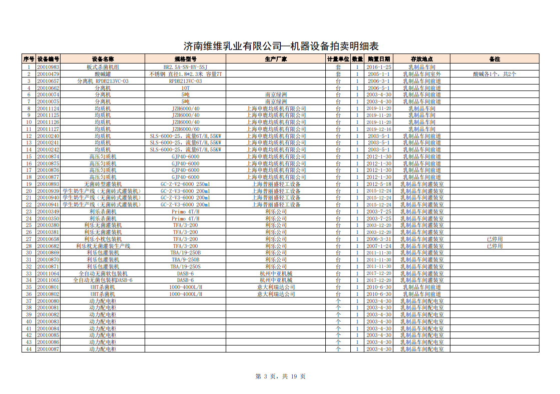 主要包含:牛奶生產(chǎn)設(shè)備、豆奶生產(chǎn)設(shè)備、利樂無菌灌裝設(shè)備、各型不銹鋼儲罐和發(fā)酵罐、鍋爐、烘干設(shè)備、空調(diào)、變壓器、配電設(shè)備、倉儲設(shè)備等。