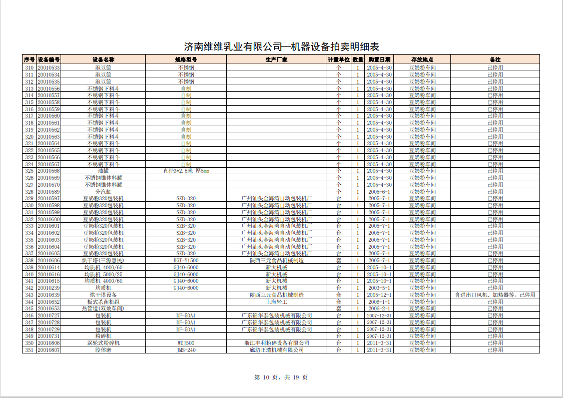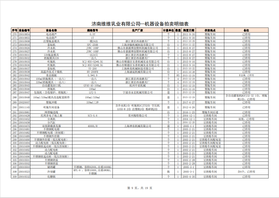 關(guān)注微信公眾號我公司受委托,定于2023年10月28日10時(網(wǎng)絡(luò)延時除外)在中拍平臺通過網(wǎng)絡(luò)競價方式公開拍賣:濟南維維乳業(yè)有限公司食品飲料生產(chǎn)加工設(shè)備及固定資產(chǎn)一批。