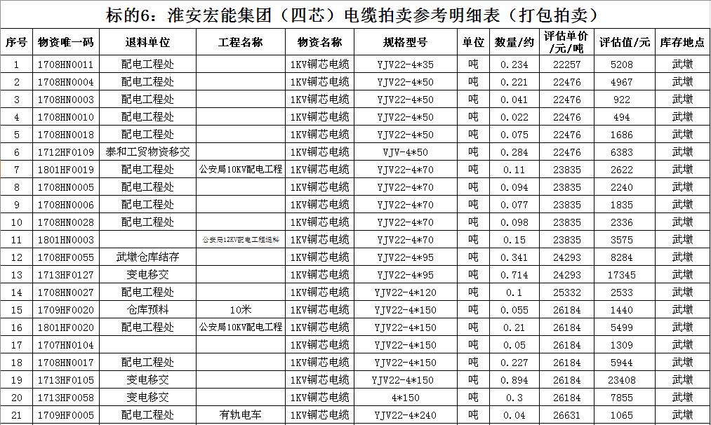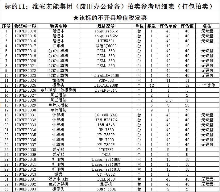 關(guān)注微信公眾號(hào)受淮安宏能集團(tuán)有限公司委托,我公司將通過(guò)中國(guó)拍賣行業(yè)協(xié)會(huì)網(wǎng)絡(luò)拍賣平臺(tái)以網(wǎng)絡(luò)競(jìng)價(jià)的方式公開拍賣廢舊物資一批,主要包括:各型電纜,計(jì)算機(jī)、打印機(jī)等辦公用品(詳見拍品目錄)。