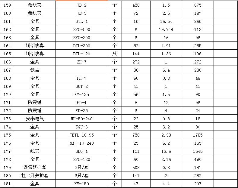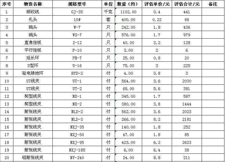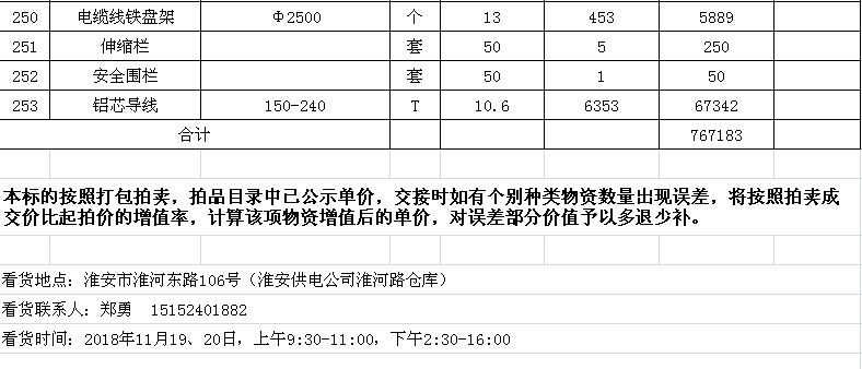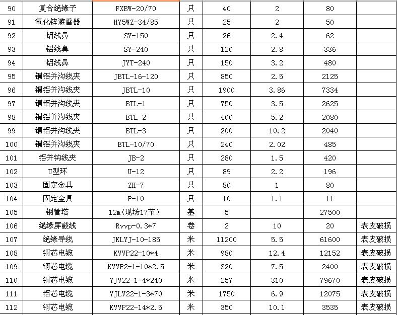 淮陰力源電力實業(yè)開發(fā)有限公司廢舊物資拍賣參考明細(xì)表