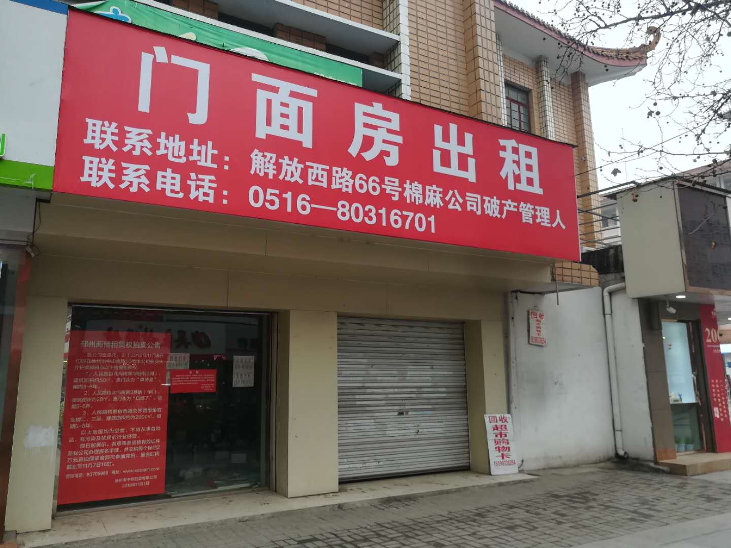 關注微信公眾號我公司受委托,定于2019年1月23日10時在徐州市中山南路55號本公司拍賣大廳拍賣以下位于邳州市區(qū)商鋪租賃權(quán):