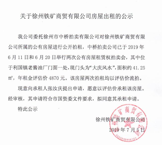 上一條:關(guān)于徐州鐵礦商貿(mào)有限公司房屋出租的公示