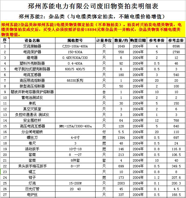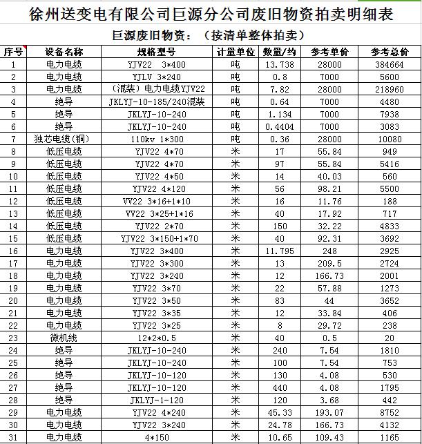 關(guān)注微信公眾號(hào)受委托,我公司將通過中國拍賣行業(yè)協(xié)會(huì)網(wǎng)絡(luò)拍賣平臺(tái)以網(wǎng)絡(luò)競(jìng)價(jià)的方式公開拍賣廢舊電力物資一批,主要包括:電纜、導(dǎo)線、廢舊鋼材、鋼芯鋁絞線、金具、雜品、機(jī)具、空調(diào)、辦公設(shè)備等。
