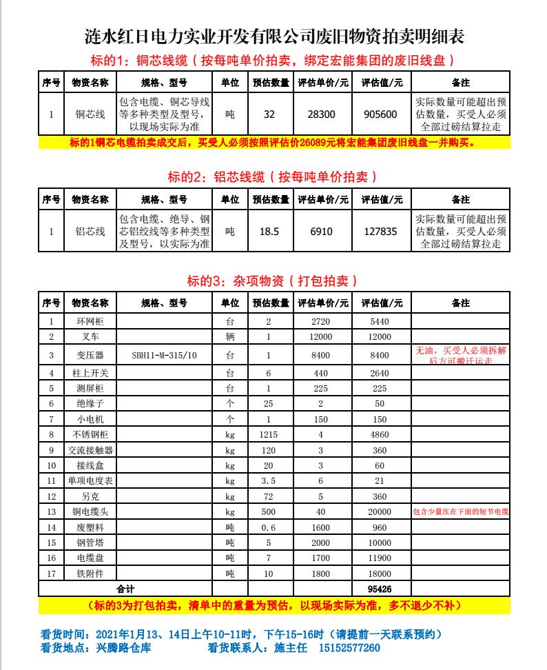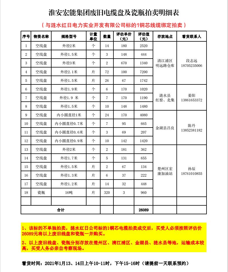 關(guān)注微信公眾號(hào)受委托,我公司將通過中拍平臺(tái)以網(wǎng)絡(luò)競(jìng)價(jià)的方式公開拍賣以下單位廢舊電力物資。主要包含:廢舊電纜盤、銅芯電纜、鋁芯電纜、鋼管塔、鐵附件、開關(guān)柜、變壓器、雜項(xiàng)物資等。